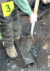 ![]() The next step is to lay a base of fines in the centre of the empty kiln. These will help the burning cinders to take hold for the burn when they're added later. |