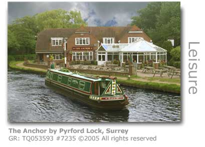The Anchor (GR: TQ053593) just downstream from Pyrford Lock is a public house of some repute. Founded in 1728, in its original form it used to provide a worthy service for the people working along the canal and travellers happening upon it. The name according to local historians was apparently originally derived from ‘anker’, this being a reference to that measurement of beer representing 8.5 imperial gallons. Stables used to rest the horses and mules working the Navigation have long since been demolished and replaced with a substantial patio laid out for the benefit of modern day guests.